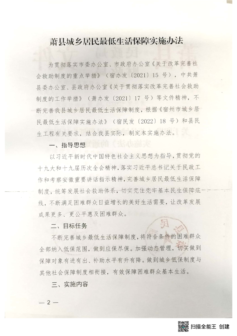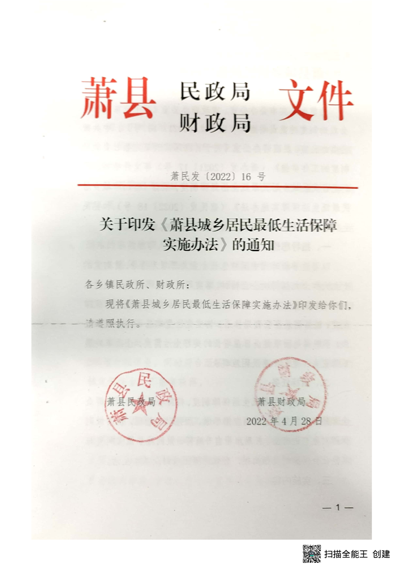【政策文件】关于印发《萧县城乡居民最低生活保障实施办法》的通知(萧民发【2022】16号)