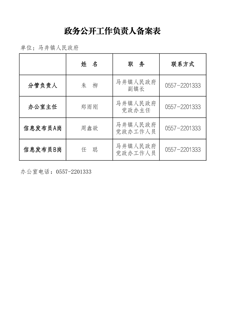 马井镇政务公开工作负责人备案表