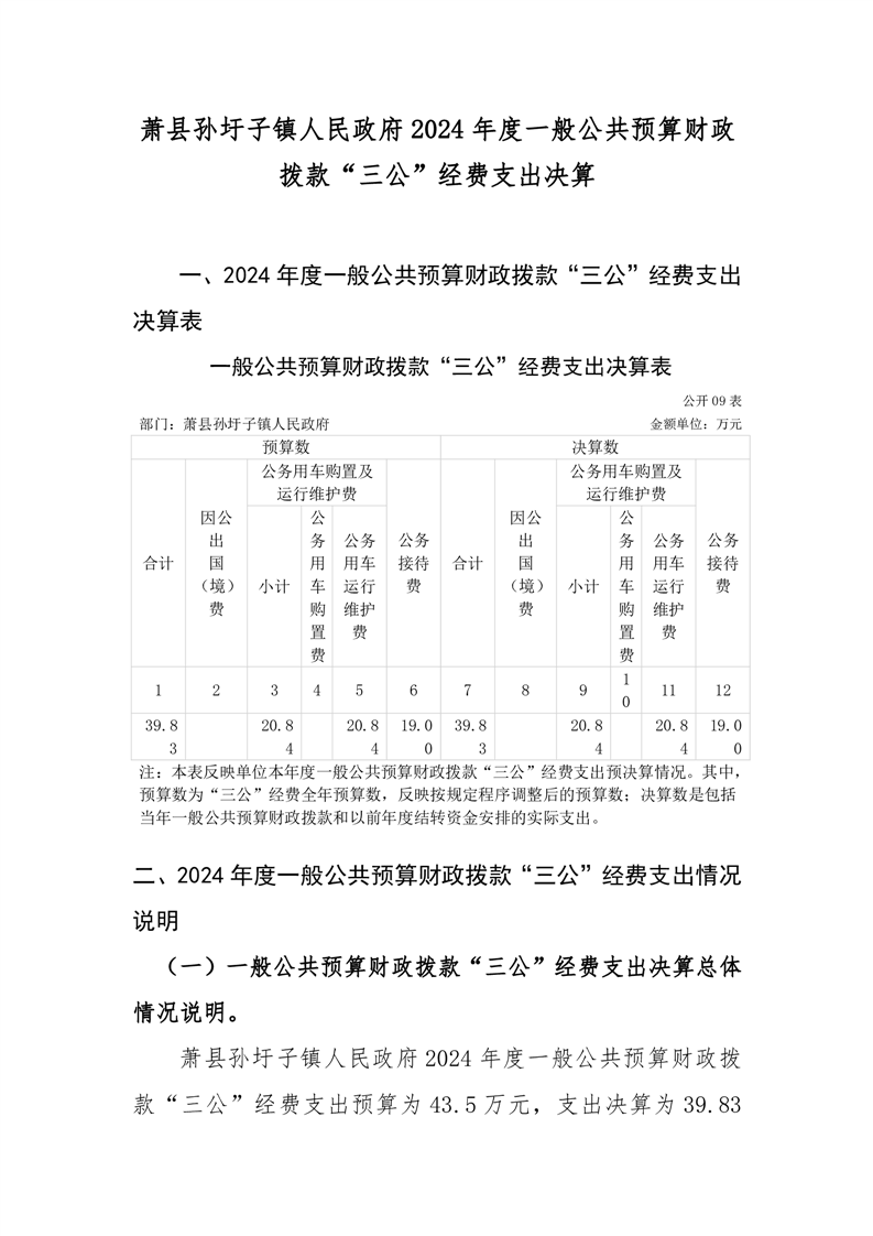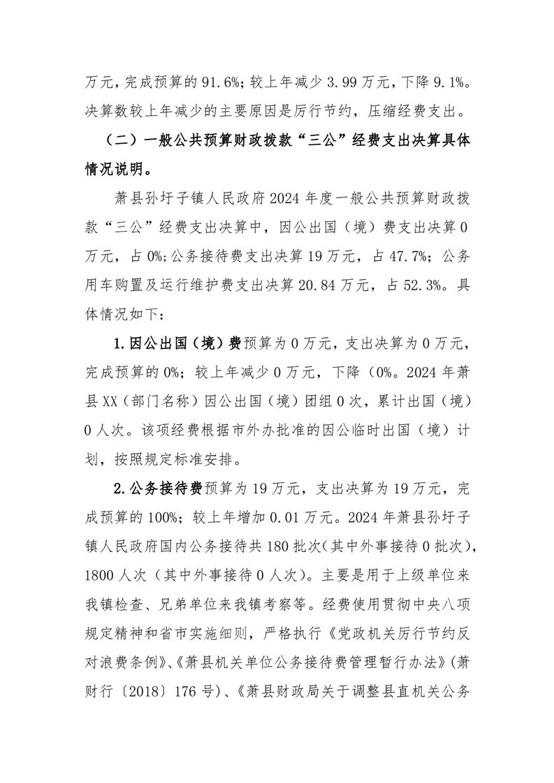 萧县孙圩子镇人民政府2024年度一般公共预算财政拨款“三公”经费支出决算
