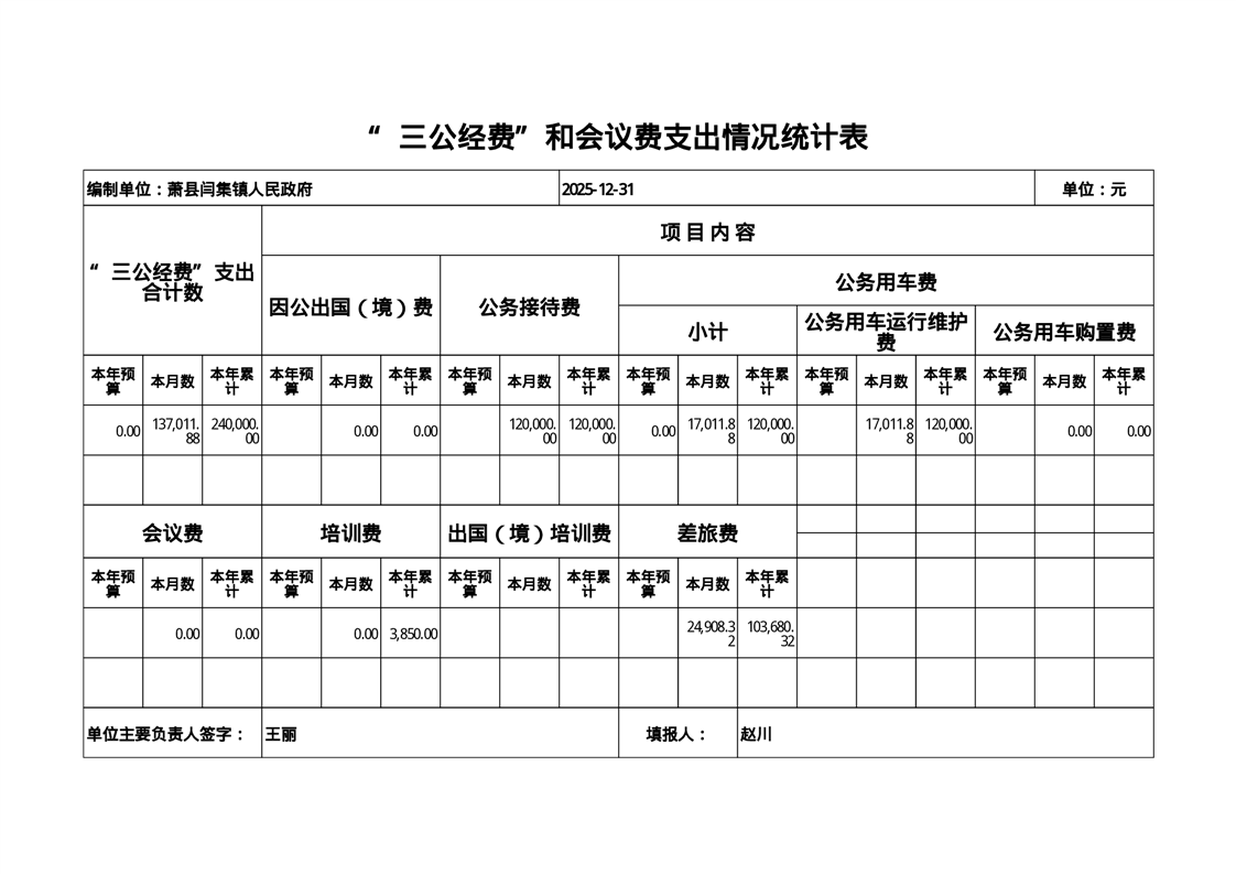 闫集镇2025年12月三公经费支出情况 |