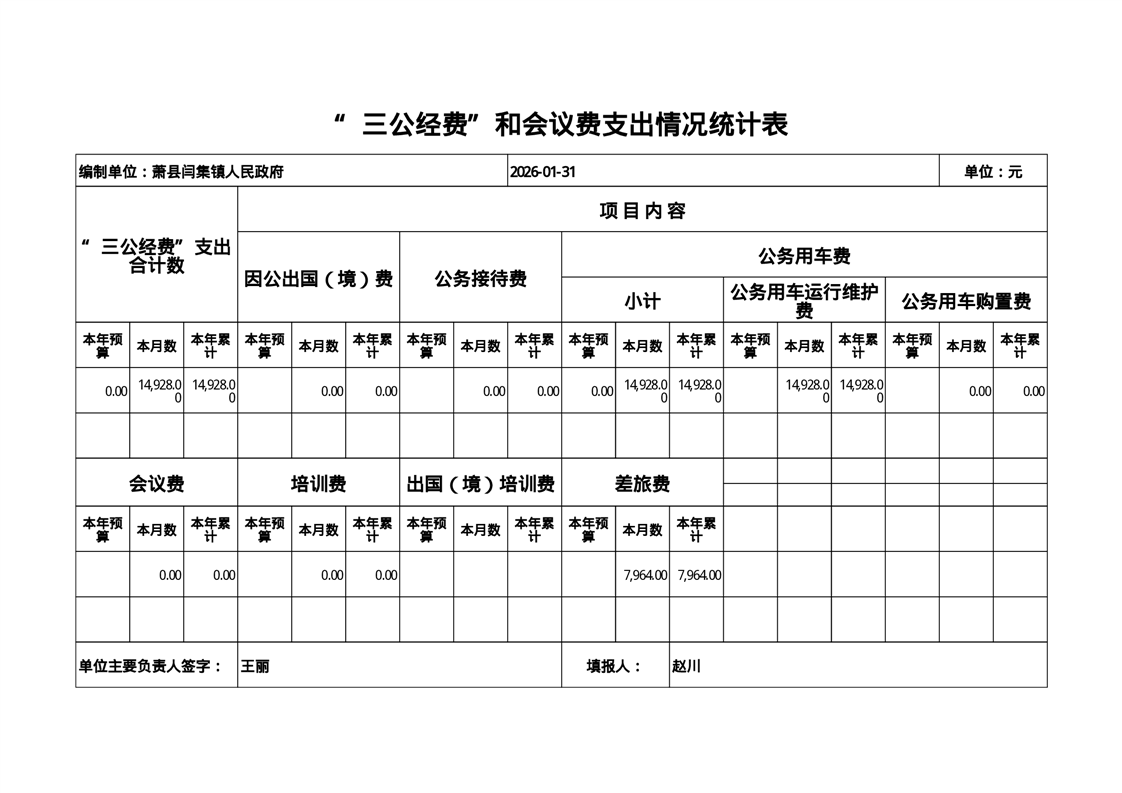 闫集镇2026年01月三公经费支出情况 |