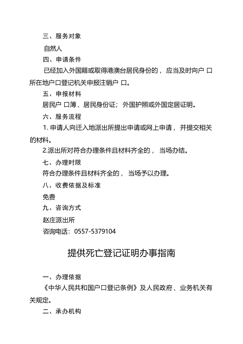 萧县赵庄镇公共服务事项办事指南(2023年版) |