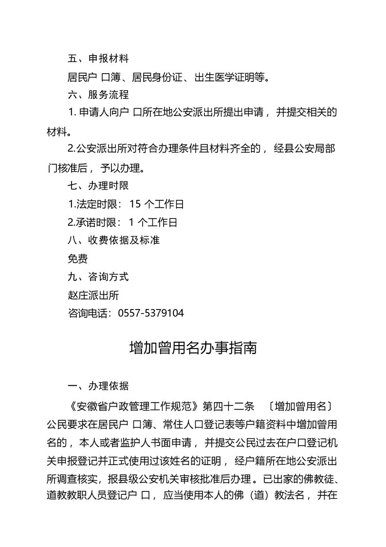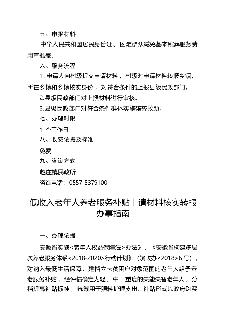 萧县赵庄镇公共服务事项办事指南(2023年版)