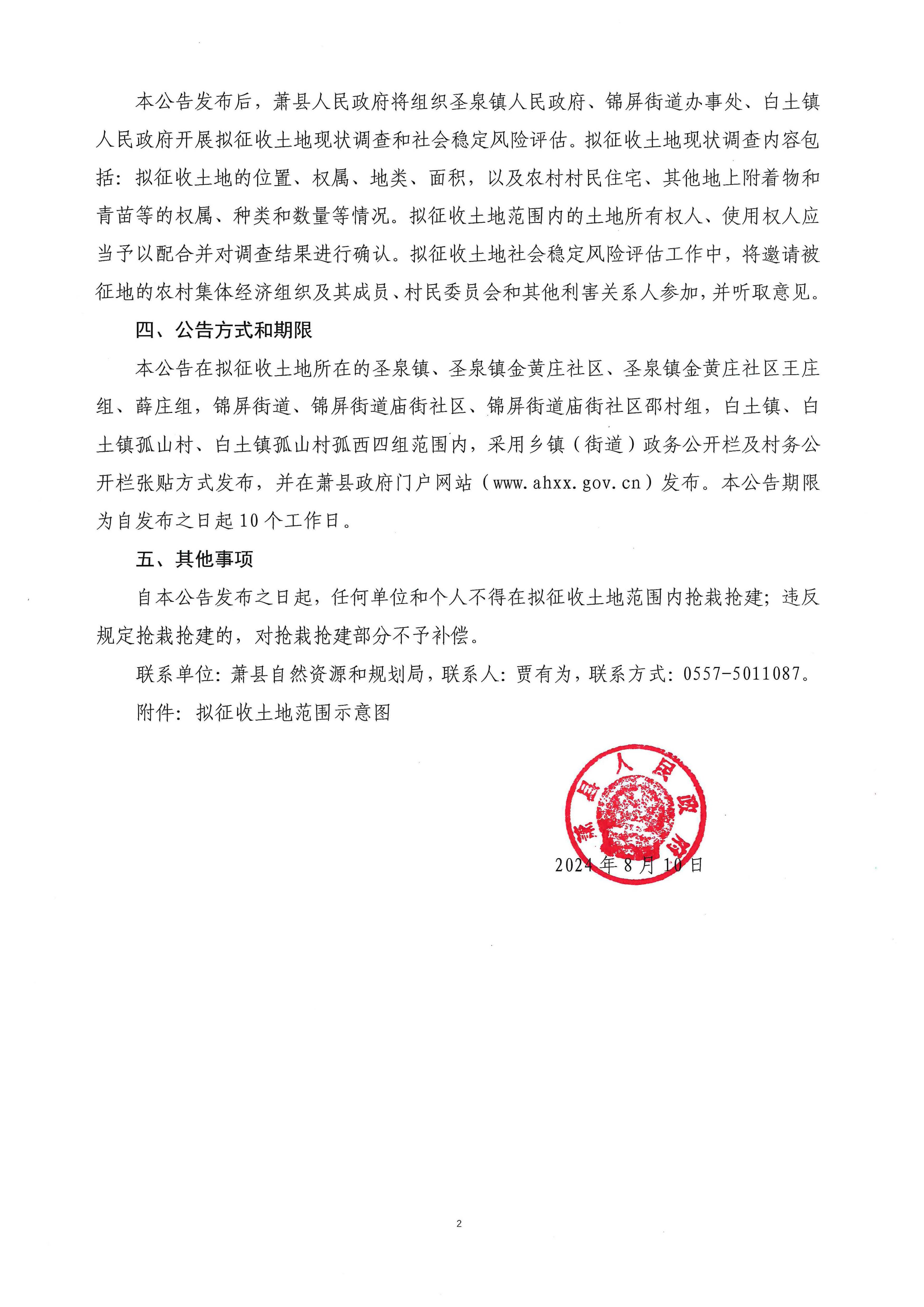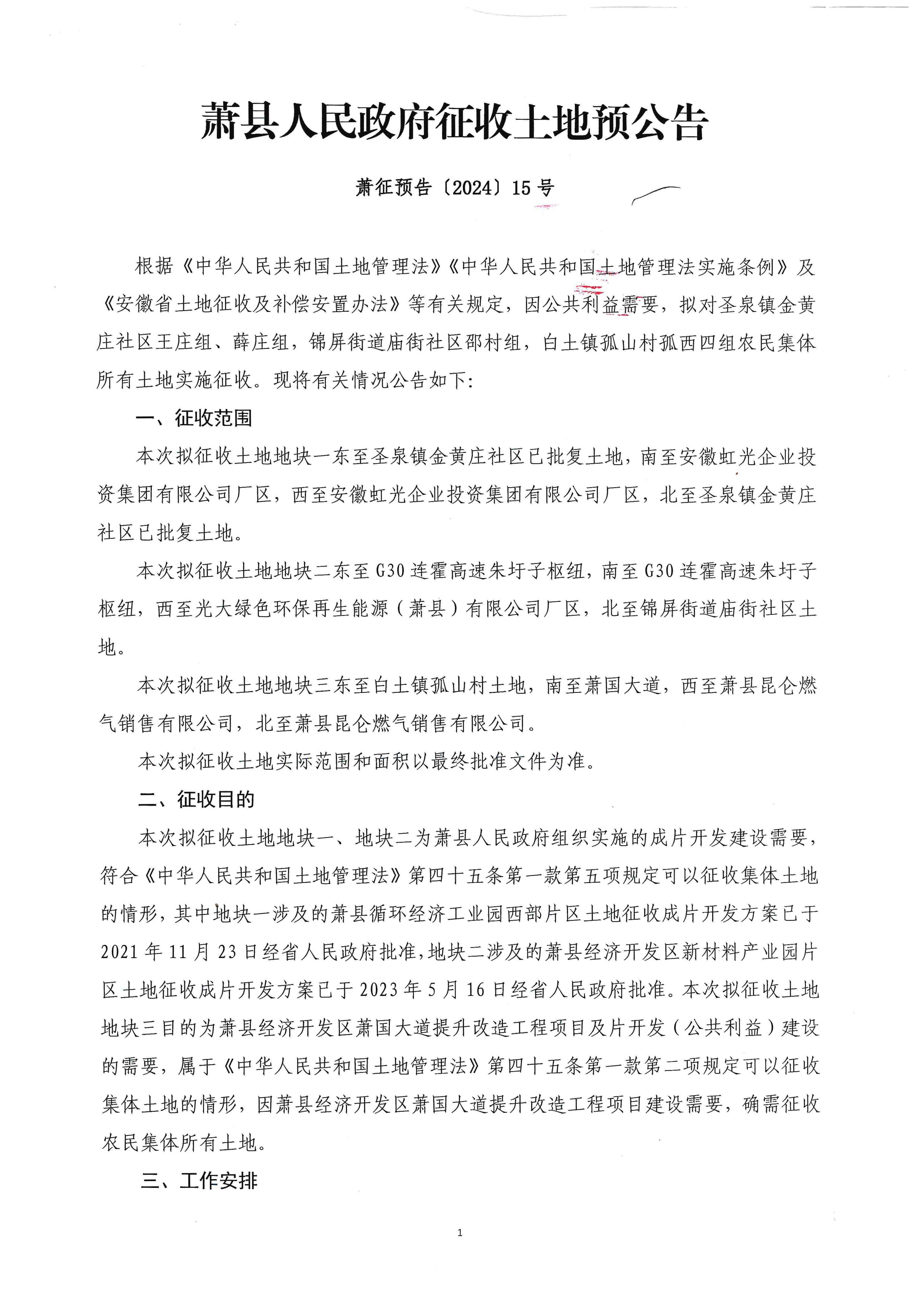 萧县人民政府征收土地预公告萧征预告(2024)15号