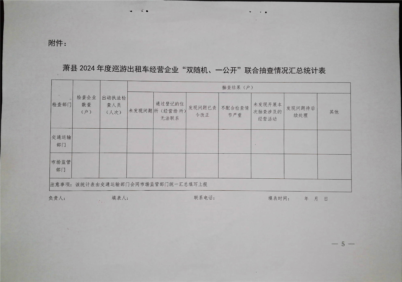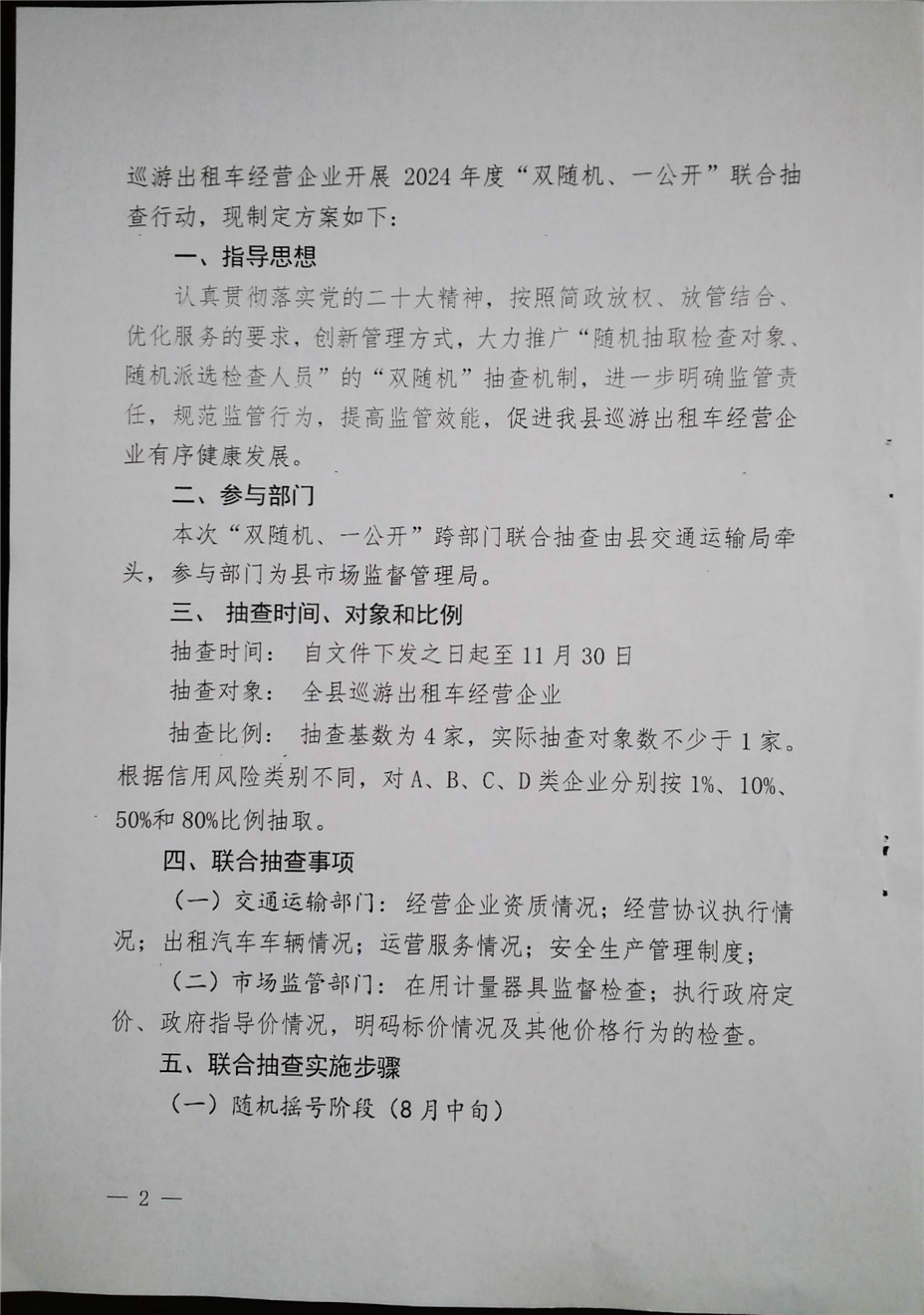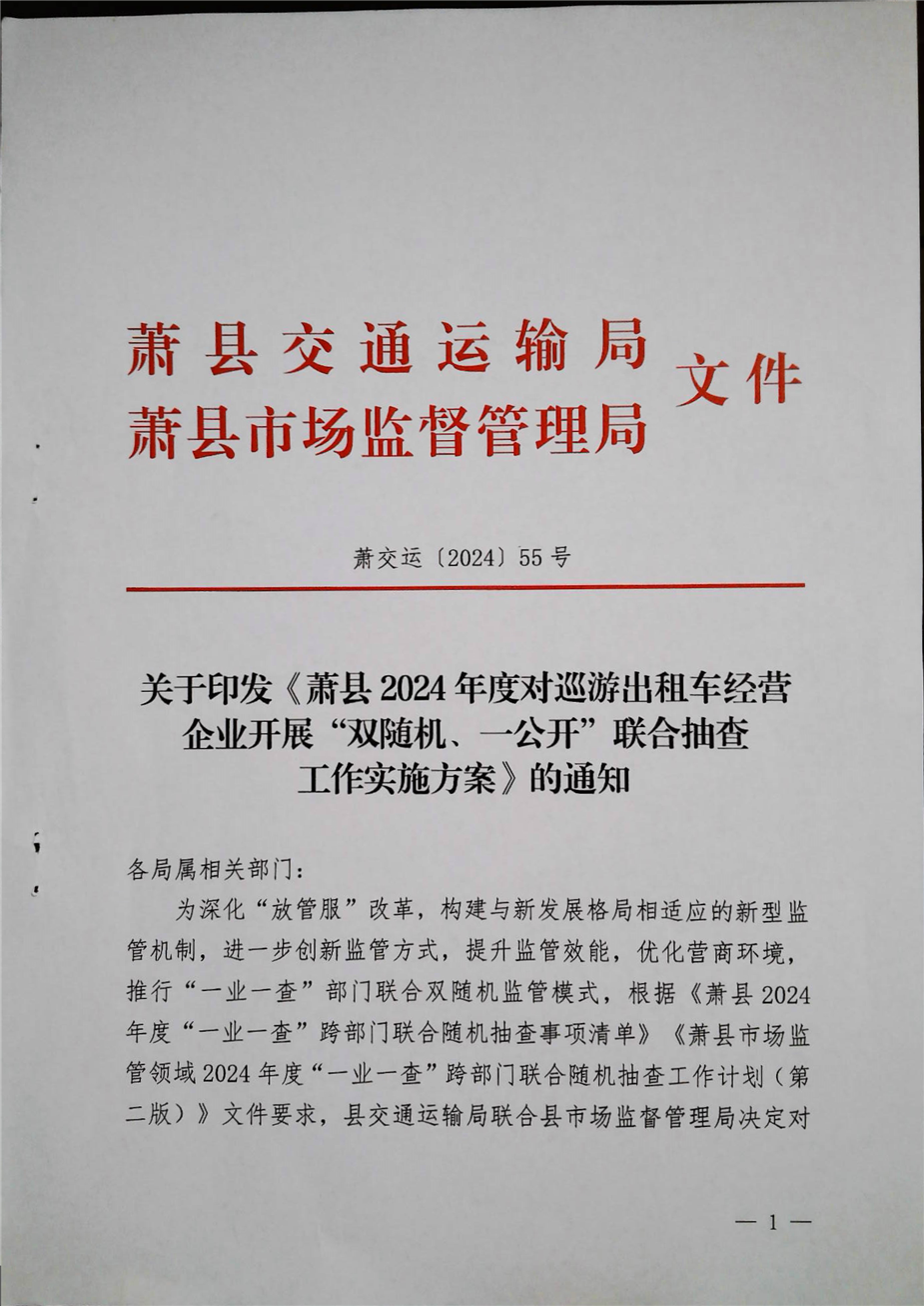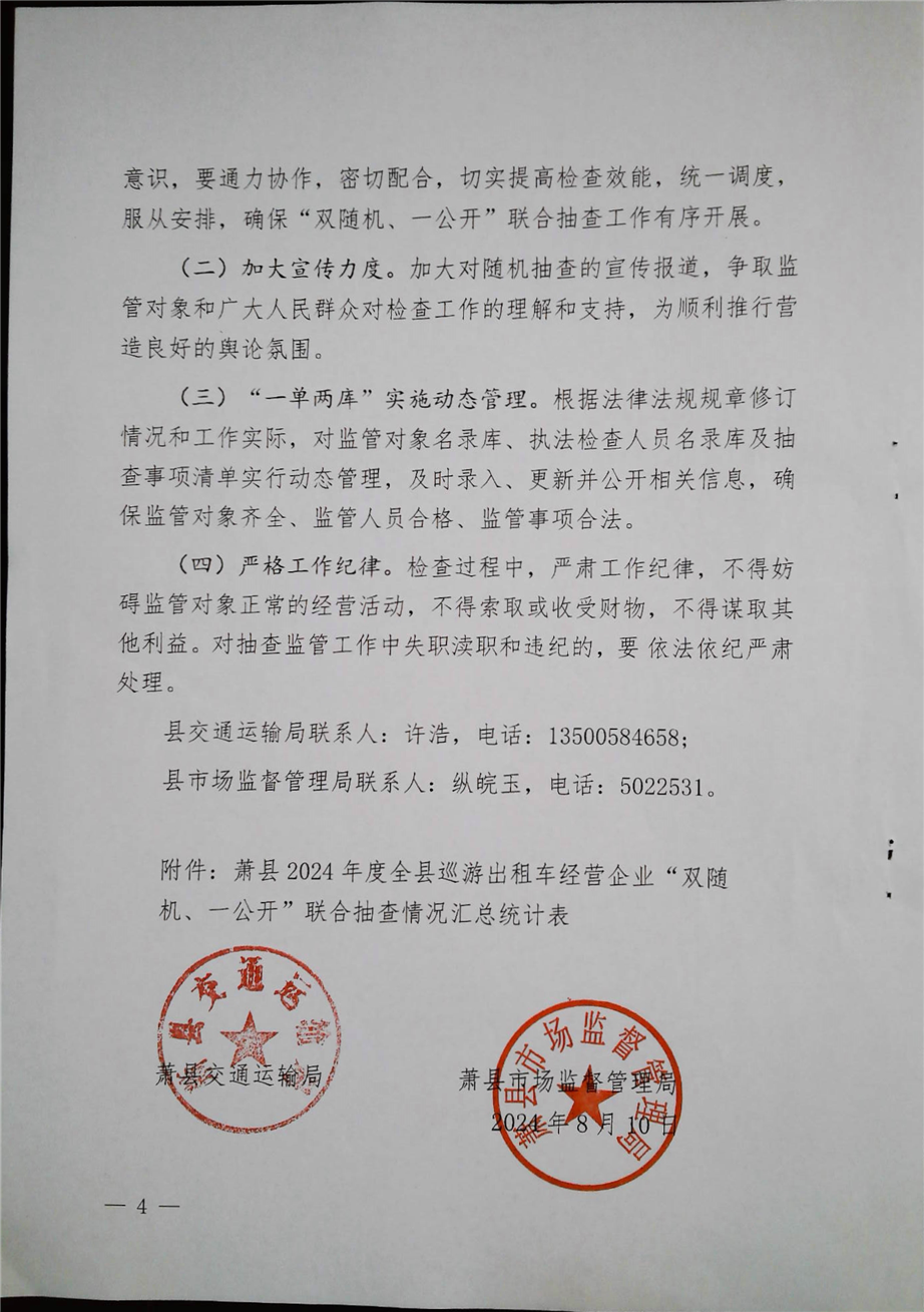 萧县2024年度对巡游出租车经营企业开展“双随机、一公开”联合抽查工作实施方案
