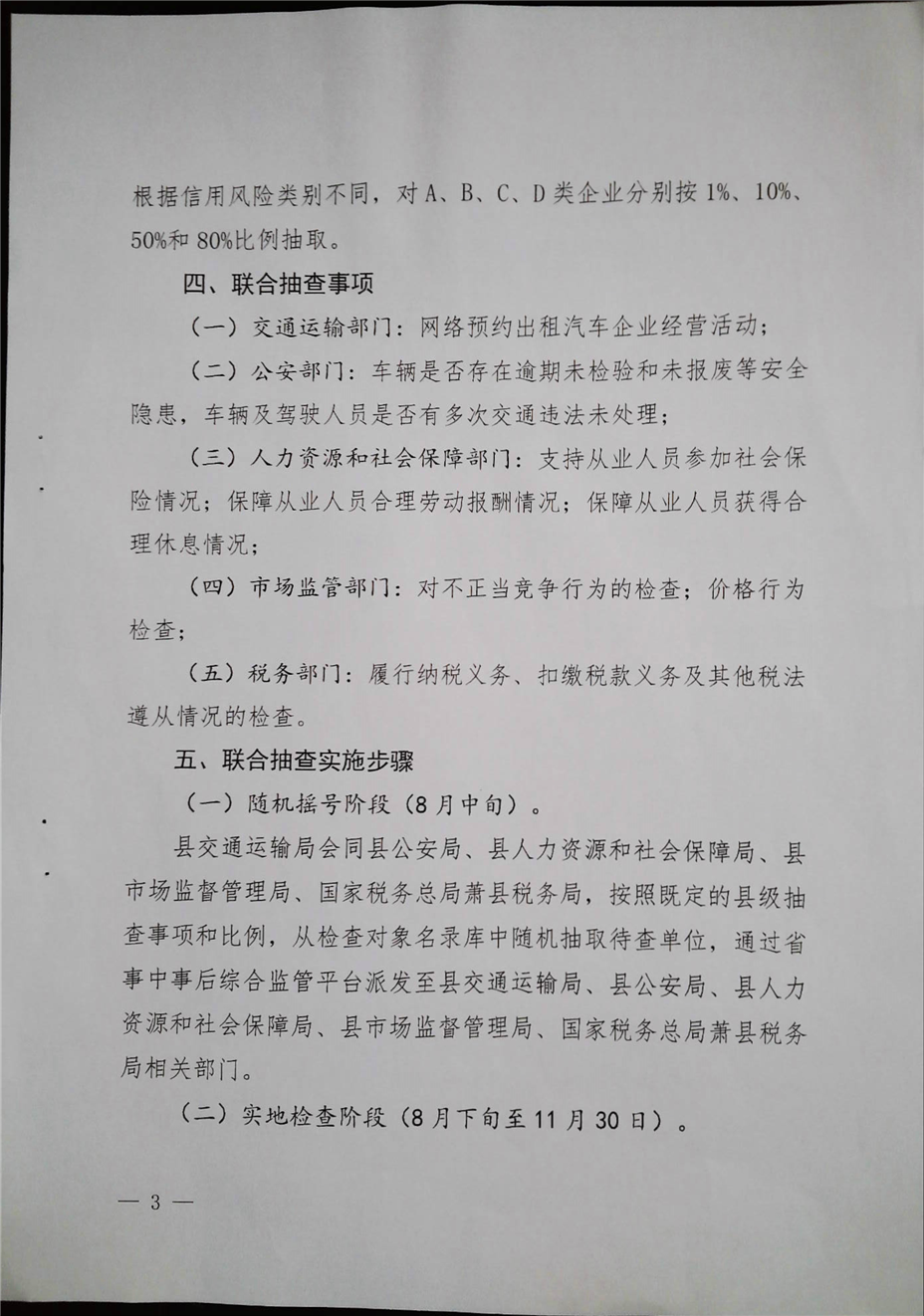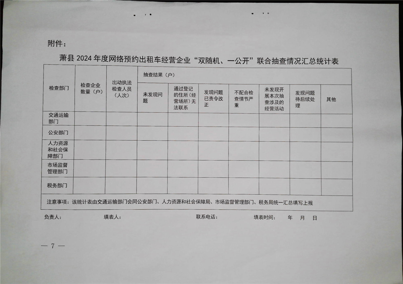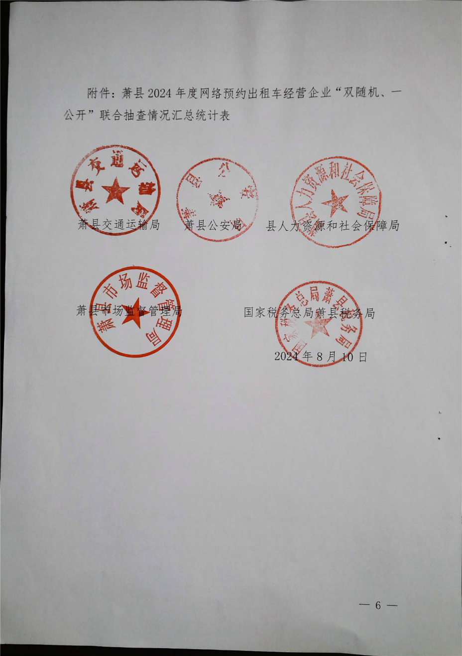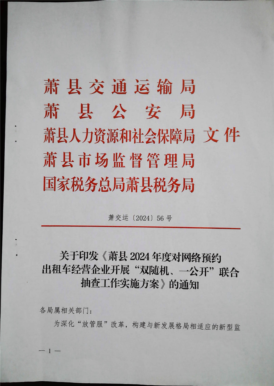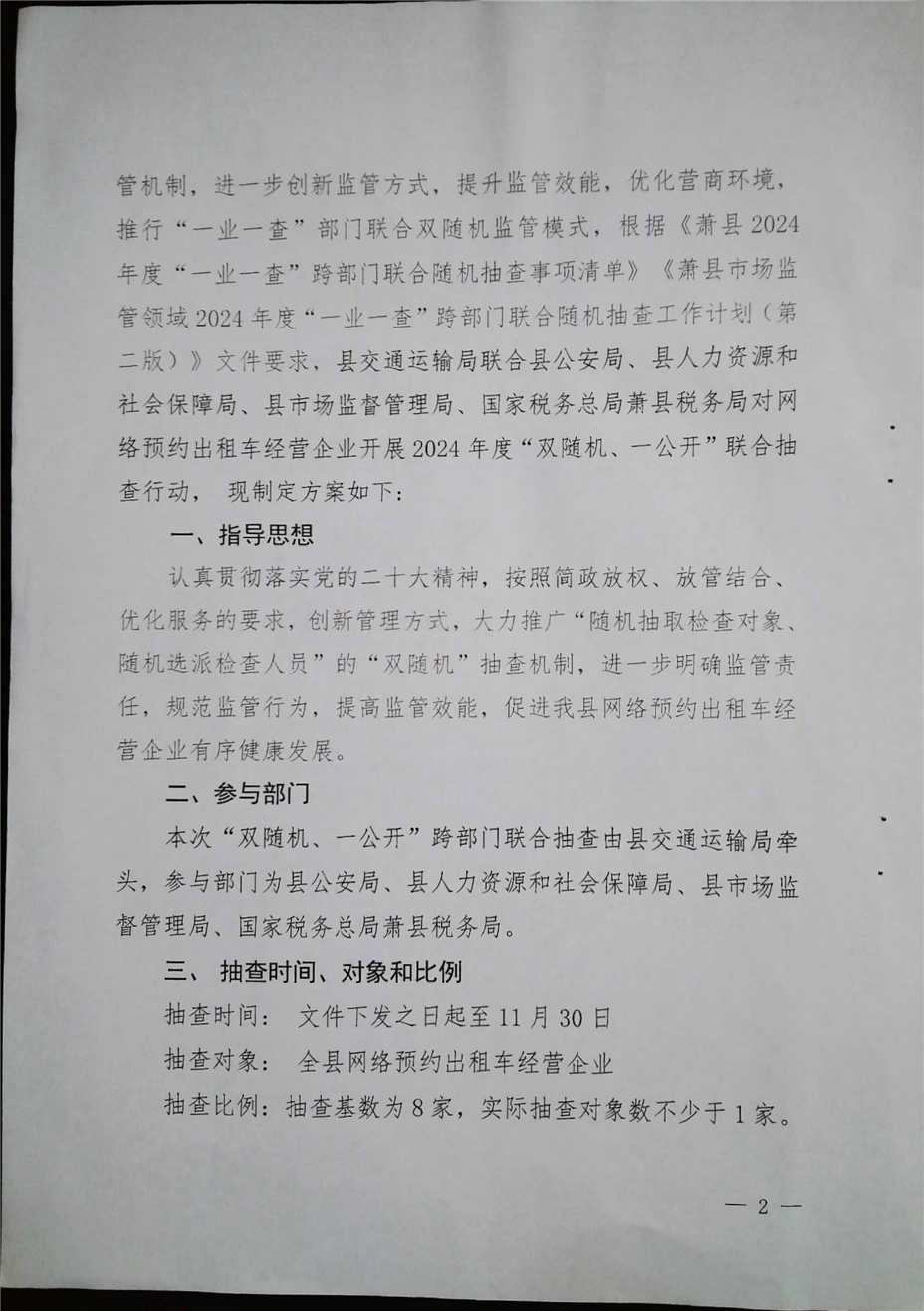 萧县2024年度对网络预约出租车经营企业开展“双随机、一公开”联合抽查工作实施方案
