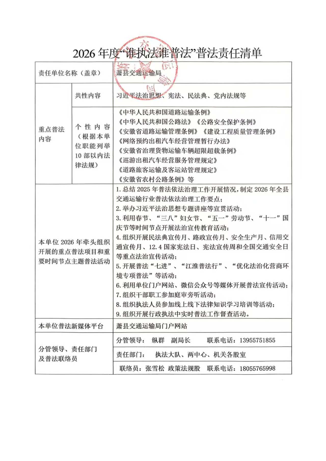 2026年度“谁执法谁普法”普法责任清单