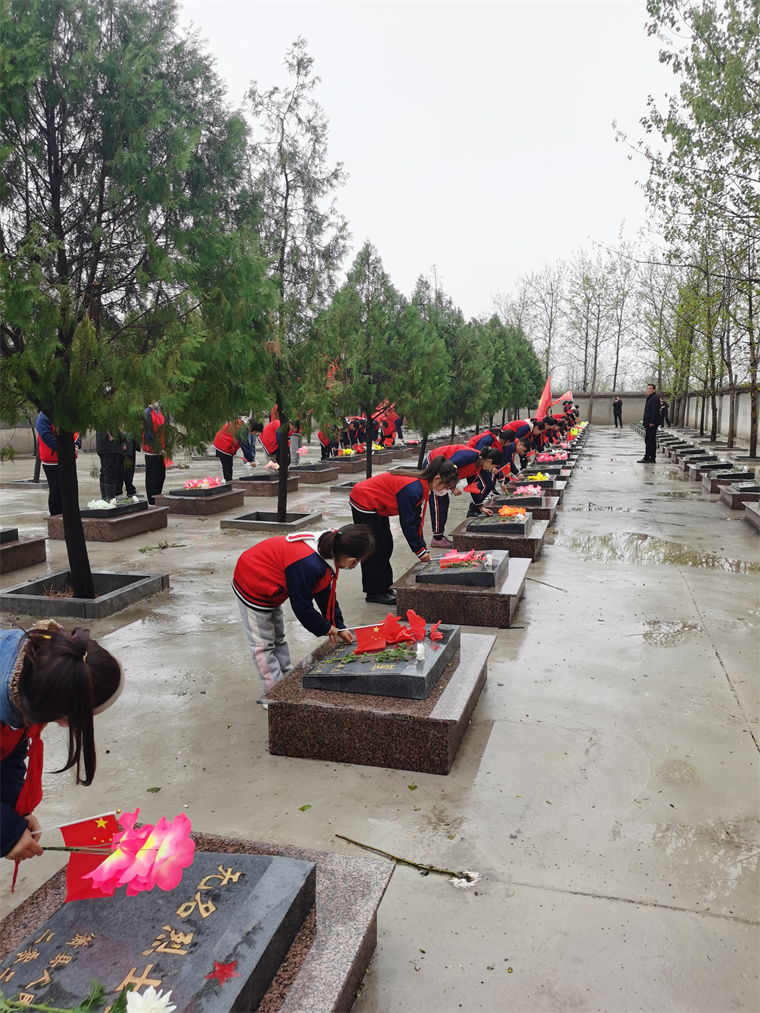 4月4日上午,萧县李庄学校组织优秀学生、教师代表徒步3.7公里到朱堤弯烈士陵园,开展“缅怀革命先烈,传承红色基因” 祭扫英烈活动。