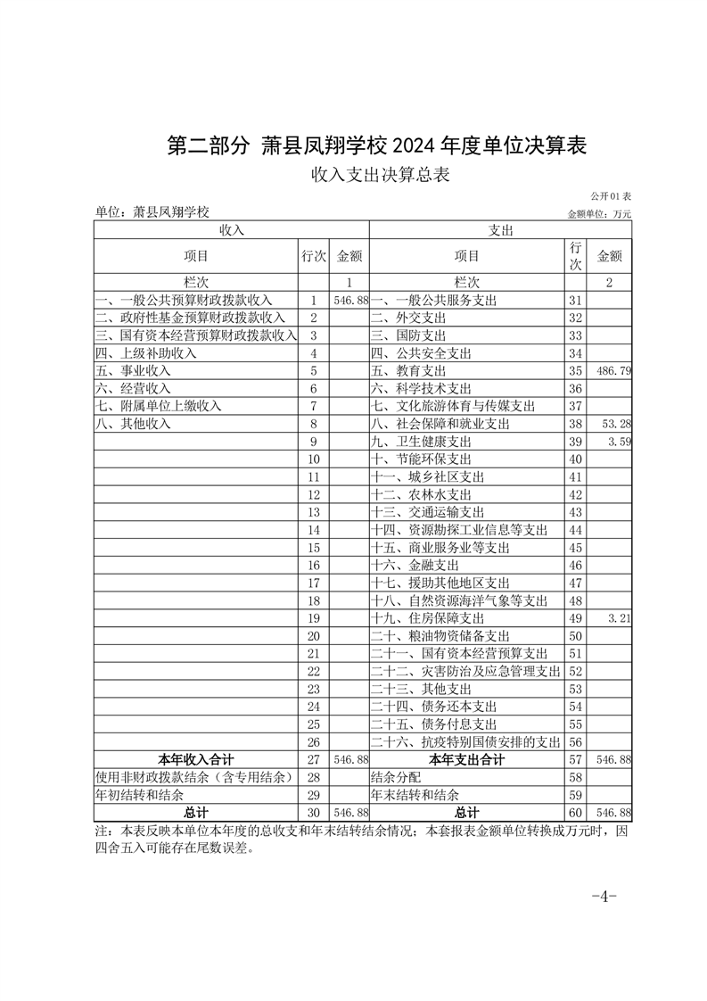 萧县凤翔学校2024年度单位决算公开 |