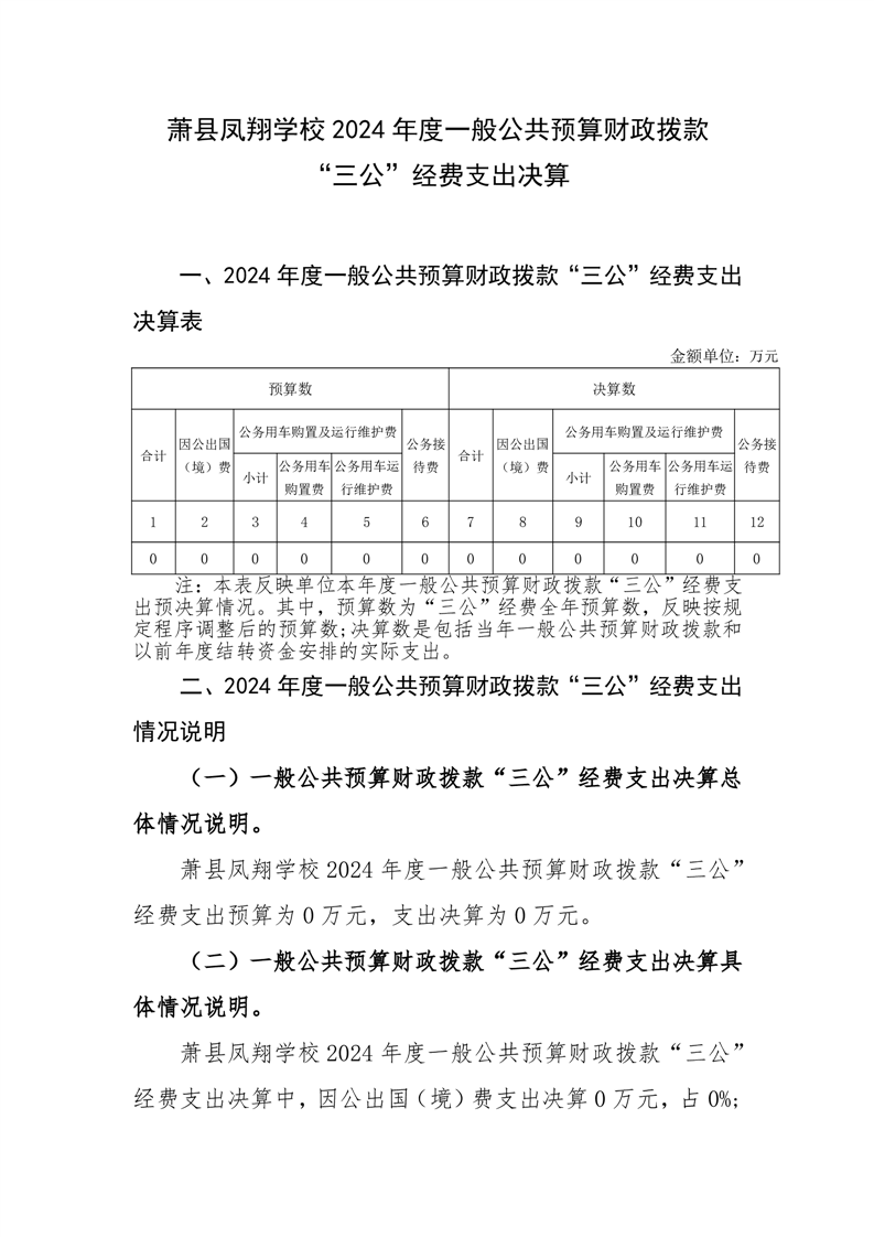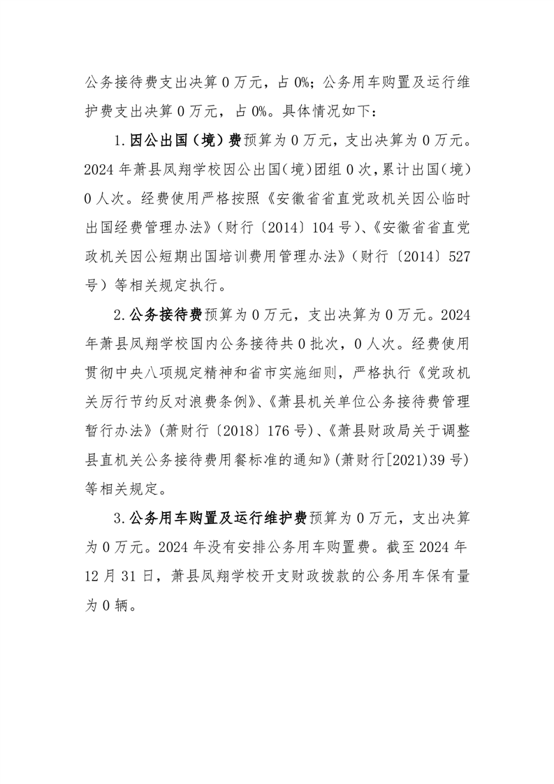 萧县凤翔学校2024年度一般公共预算财政拨款“三公”经费支出决算公开