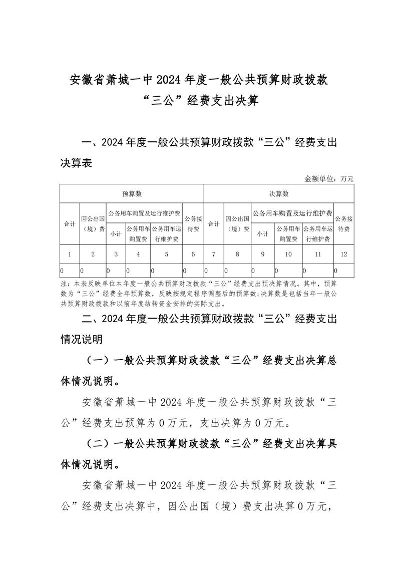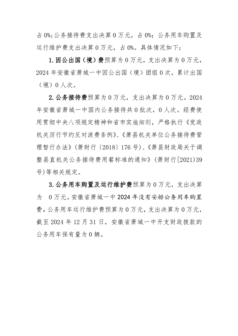 安徽省萧城一中2024年度一般公共预算财政拨款“三公”经费支出决算公开