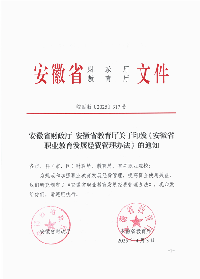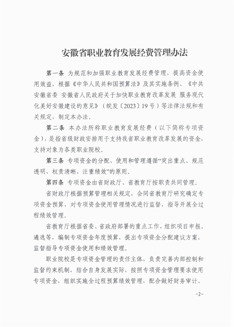 安徽省财政厅安徽省教育厅关于印发《安徽省职业教育发展经费管理办法》的通知