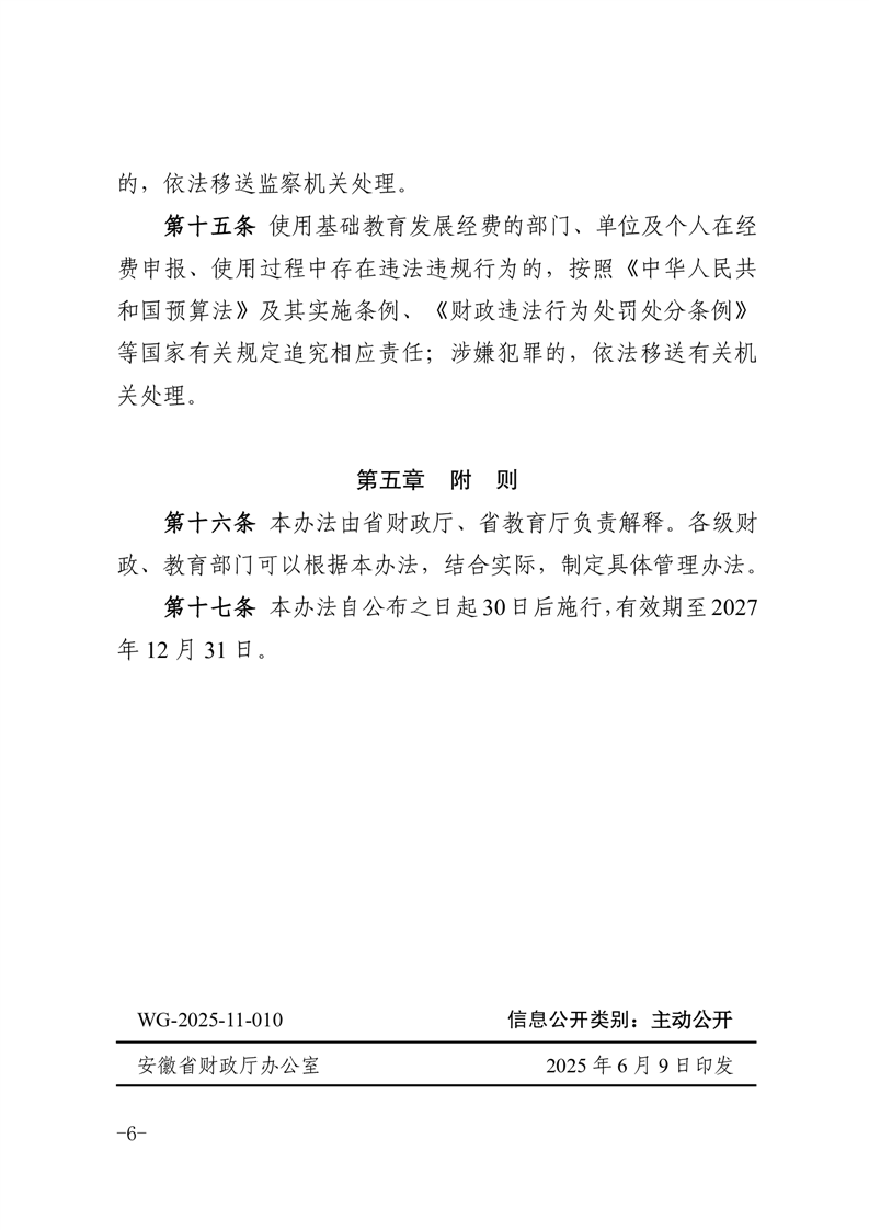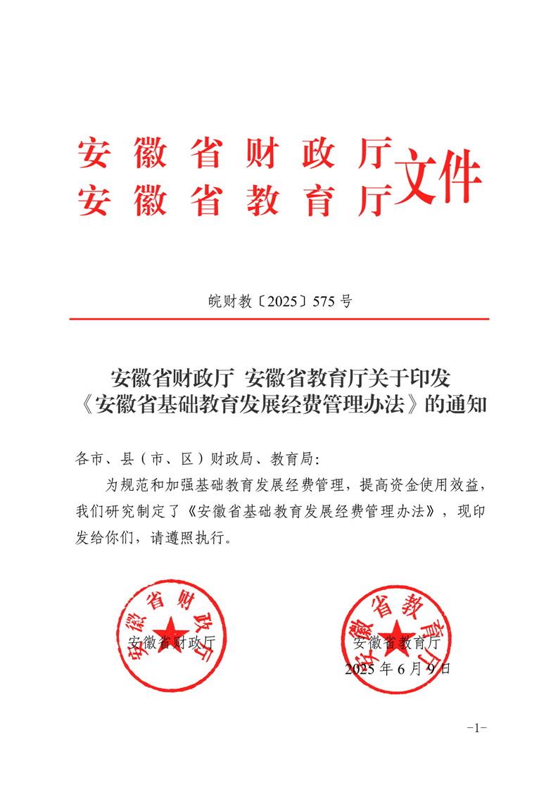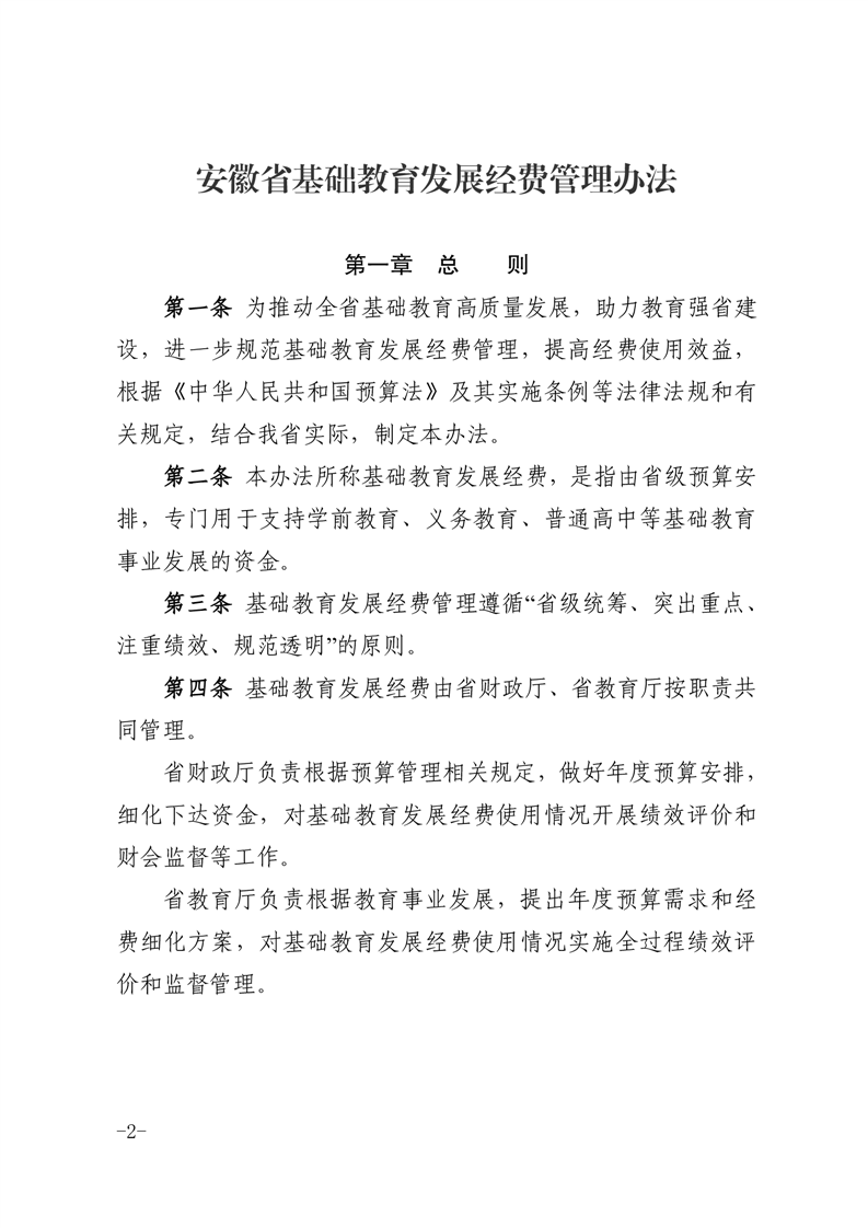 安徽省财政厅安徽省教育厅关于印发《安徽省基础教育发展经费管理办法》的通知