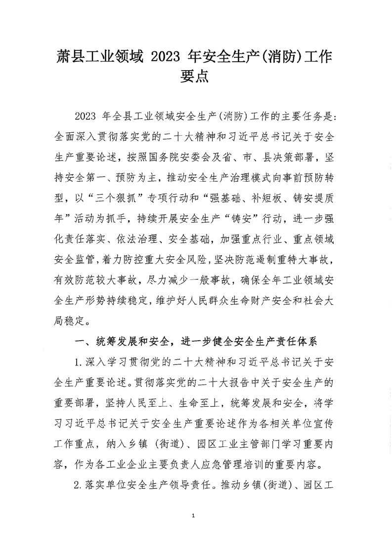 萧县工业领域2023年安全生产(消防)工作要点 |