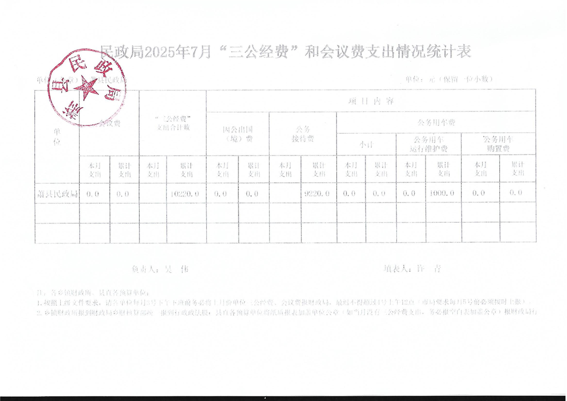 萧县民政局2025年7月份“三公”经费情况 |