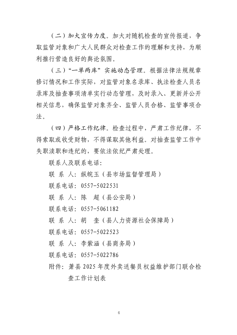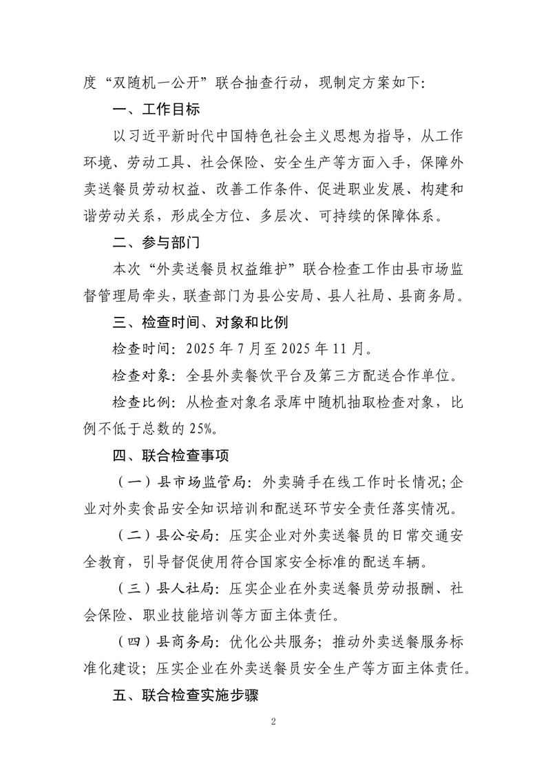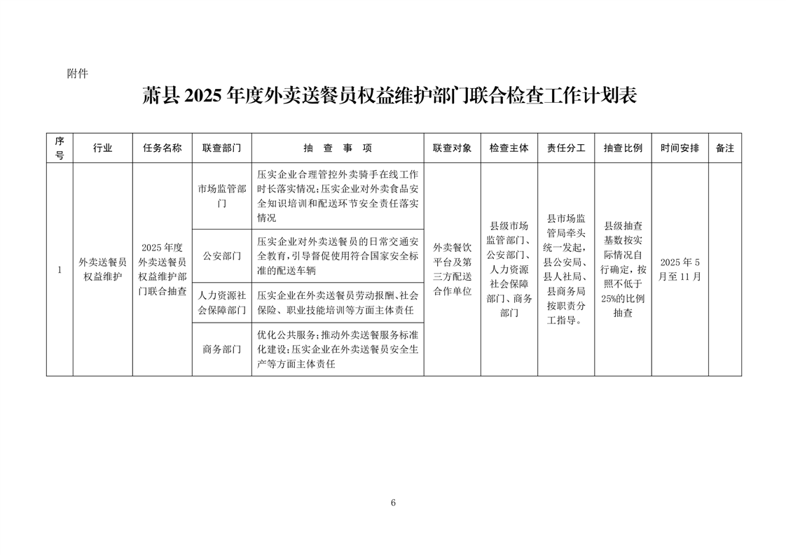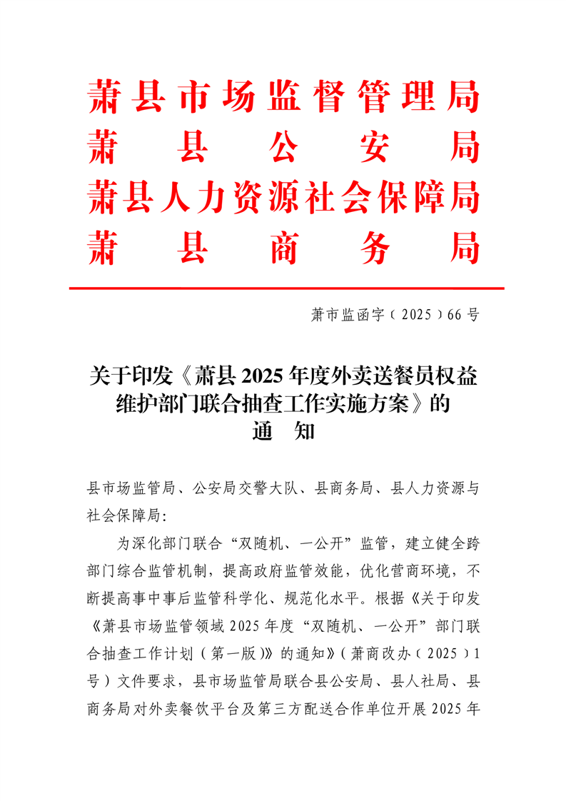 关于印发《萧县2025年度外卖送餐员权益维护部门联合抽查工作实施方案》的通知