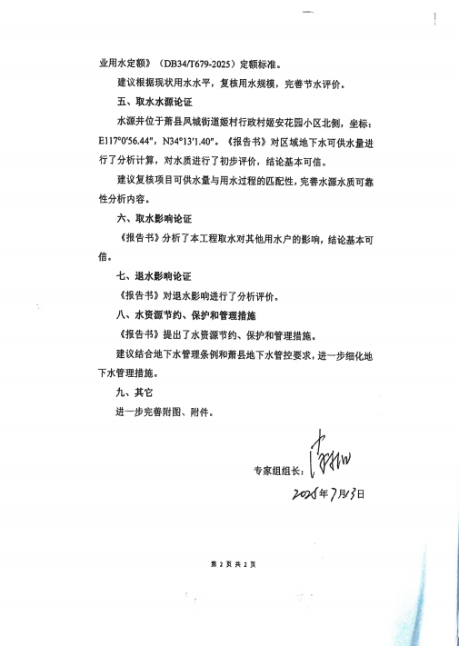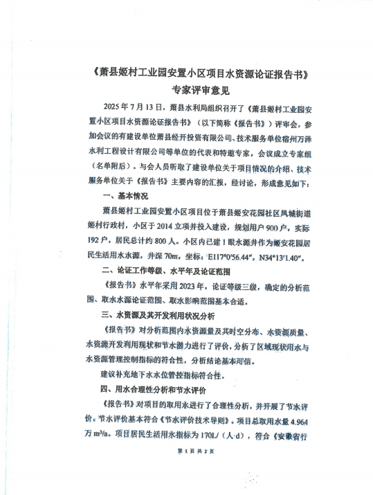 附件:萧县姬村工业园安置小区项目水资源论证报告书技术审查意见