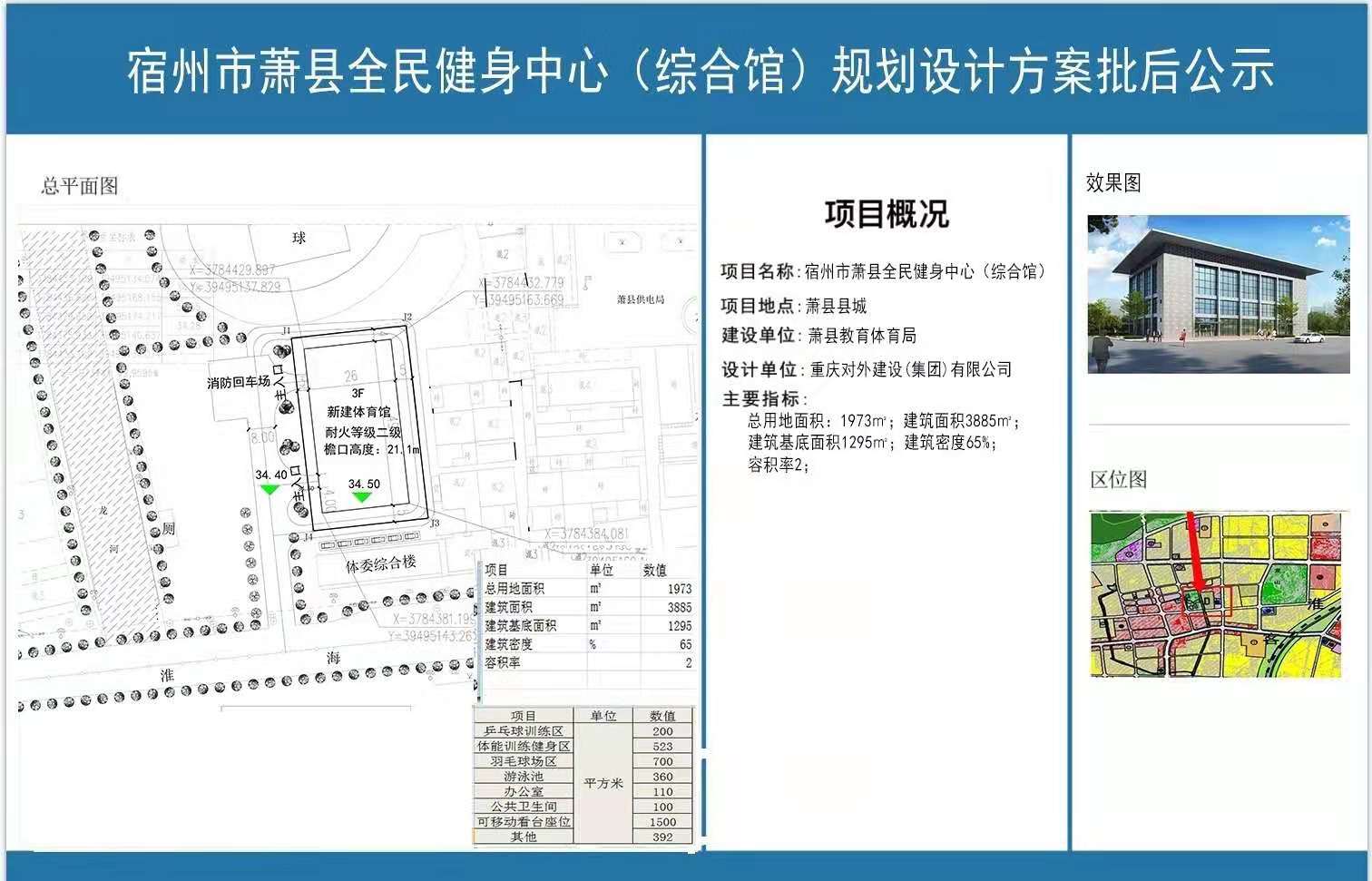 宿州市萧县全民健身中心(综合馆)规划设计方案批后公告