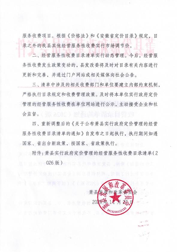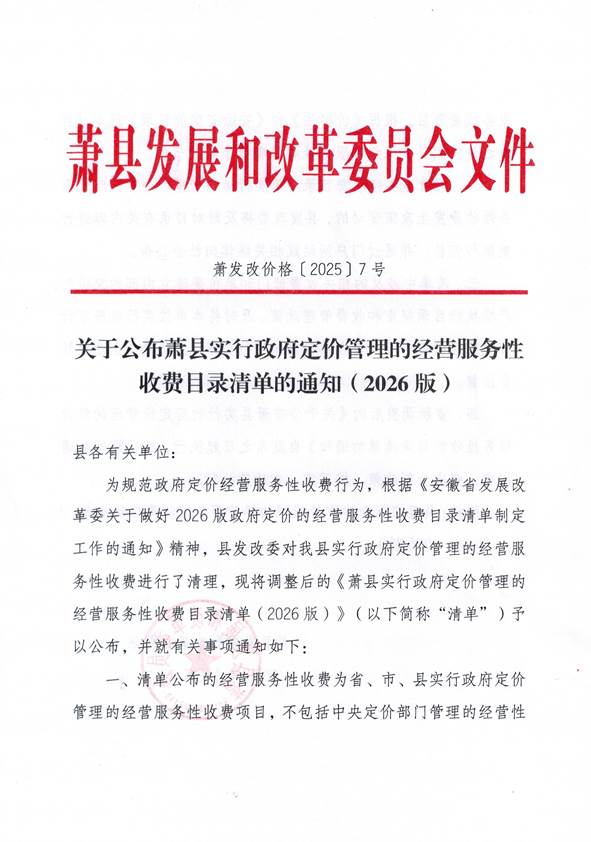 萧县实行政府定价管理的涉企经营服务性收费(2026版)